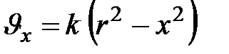 . Уравнение (10.3) представляет собой уравнение параболы, которая на рис. 10.3 изображена пунктиром; поэтому говорят, что скорости ламинарного течения в трубе распределены по параболическому закону.