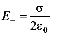 Поле таких плоскостей найдем как суперпозицию полей, создаваемых каждой из плоскостей в отдельности. Как видно из рисунка, слева и справа от плоскостей поля вычитаются (линии напряженности направлены навстречу друг другу), поэтому здесь напряженность поля Е = 0. В области между плоскостями Е = Е+Е (Е и E определяются по формуле (7), поэтому результирующая напряженность