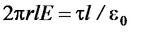 Если r < R,то замкнутая поверхность зарядов внутри не содержит, поэтому в этой области Е = 0. Таким образом, напряженность поля вне равномерно заряженного бесконечной нити определяется выражением (10), внутри же ее поле отсутствует.