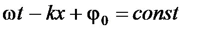 где А – амплитуда волны, ω – циклическая частота, φ0 – начальная фаза волны, определяемая в общем случае выбором начал отсчета х и t,