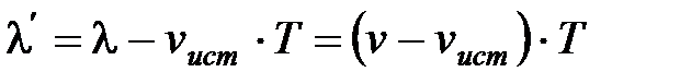 4. Источник приближается к приемнику, а приемник покоится, т.е. vист>0, vпр=0. В данном случае скорость распространения волны зависит лишь от свойств среды, поэтому за время, равное периоду колебаний источника, излученная им волна пройдет в направлении к приемнику расстояние vT (равное длине волны λ) независимо от того, движется ли источник или покоится. За то же время источник пройдет в направлении волны расстояние vистּT (рис.4), т.е. длина волны в направлении движения сократится и станет равной