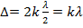 где k = 0,1,2,3,4… - порядок интерференционного максимума или минимума.