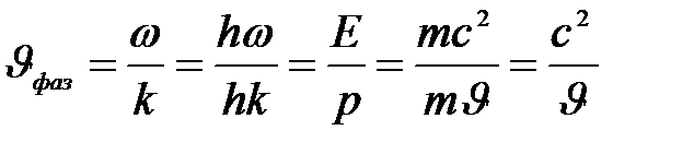 — волновое число). Так как с > v, то фазовая скорость волн де Бройля больше скорости света в вакууме. Групповая скорость,