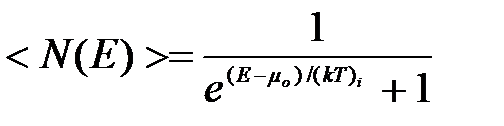 Электроны проводимости в металле можно рассматривать как идеальный газ, подчиняющийся распределению Ферми — Дирака . Если μo — химический потенциал электронного газа при Т = О К, то, среднее число (N(E)) электронов в квантовом состоянии на энергетическом уровне с энергией Е равно