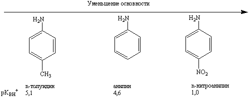 Заместители- доноры увеличивают электронную плотность в основном центре и этим увеличивают основные свойства.