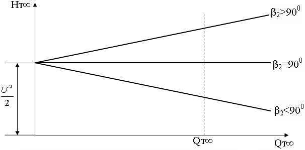 В соответствии с этим уравнением построим зависимость напора от подачи при различных углах b2 (рисунок 17).