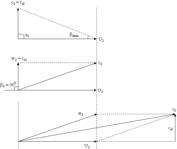 Рисунок 18 – Треугольники скоростей при различных Ðb2