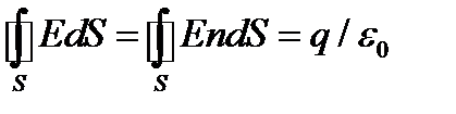 На основе закона Кулона для электростатического поля доказывается закон Гаусса для вакуума. Он устанавливает связь потока вектора E через произвольную замкнутую поверхность S с алгебраической суммой q свободных электрических зарядов, заключенных в объеме V, ограниченном поверхностью S: