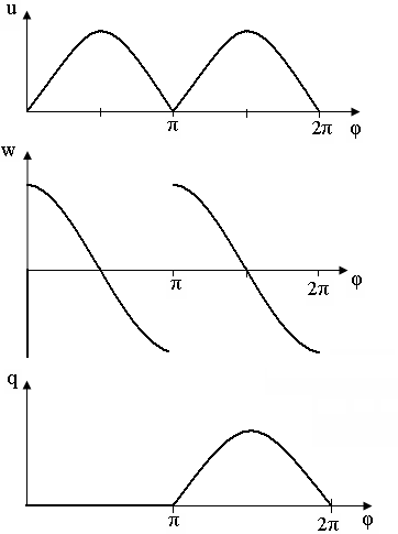 Рисунок 64 – Зависимость параметров поршневого насоса от угла поворота кривошипа