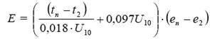 где tn – температура поверхности снега, t2 – температура воздуха на высоте 200 см, U10 – скорость ветра на высоте 10 м (по флюгеру), еп– упругость водяного пара (мб), определяемая по температуре поверхности снега, e2 – упругость водяного пара на высоте 200 см от поверхности земли (снежного покрова).