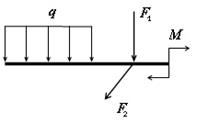 4) Внешнюю поверхностную нагрузкучасто заменяют сосредоточенной силой и сосредоточенным моментом, обозначать которые будем буквамиF и М. Их изображают так, как показано на рис. 2.1.3.
