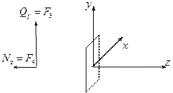 2) Если внешняя сила действует слева на сечение поперек оси, то вклад этой внешней силыв суммарную поперечную силу Qу положителен при совпадении направлений оси у и внешней силы.