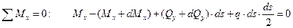 Отсюда следует соотношение, называемое вторым уравнением равновесия элемента балки