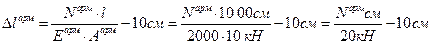 Учтем, что арматура сделана короче проектной длины на 10 см., но удлиняется от силы N арм по закону Гука. Тогда получим