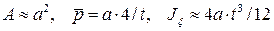 Отметим, что стержни с замкнутым профилем намного прочнее и жестче, чем стержни с открытки профилем. Для примера можно рассмотреть трубу квадратного сечения ширины а, постоянной толщины t (см. рис.18.28). Тогда