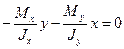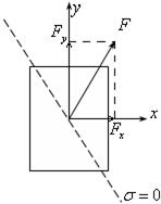 Особенностью косого изгиба и растяжения с изгибом в общем случае является то, что нейтральная линия (штриховая прямая на рис.19.7) не перпендикулярна равнодействующей F поперечных сил Fх , Fу .