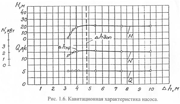 определяют по кавитационной характе-ристике насоса, образец которой для одного из насосов представлен на рис. 1.6.