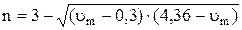 Коэффициент n рассчитывается в зависимости от средней скорости газов υm в трубе.