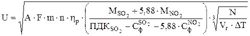 При выбросе SO2 и NO2 учитываются выбросы обоих ингредиентов выражением