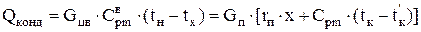 Здесь: Qконд – тепло, сбрасываемое через конденсатор в водоем-охладитель; Gцв – расход циркводы; tх, tн – температура прямой (холодной) и обратной (нагретой) циркводы; Gп – расход пара в конденсатор; rп – скрытое тепло конденсации; x – степень сухости пара в конденсаторе; tк,