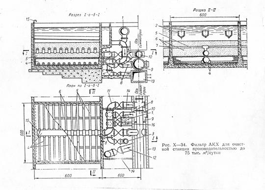 Диаметр отверстий в нижней системе не менее 10 мм, в средней должен быть меньше диаметра наиболее мелких зерен. По сложности конструкции и экономическим причинам фильтры АКХ вытеснены из применения более простыми двухслойными.