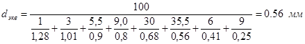 где Pi - процентное содержание фракций со средним диаметром зерен dк, или, иначе говоря, количество просеиваемых зерен в % оставшиеся на сите калибром dк
