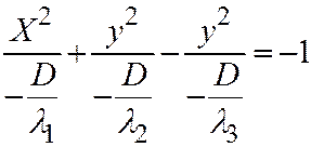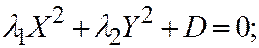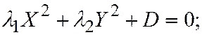 II) Если поверхность второго порядка, заданная общим уравнением (1) относительно ДПСК, является поверхностью II группы, то её простейшее уравнение может быть приведено к следующему виду: