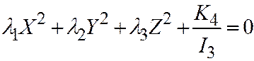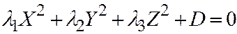 III) Если поверхность второго порядка, заданная общим уравнением (1) относительно ДПСК, является поверхностью III группы, то её простейшее уравнение может быть приведено к следующему виду: