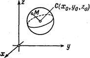 Пример 1. Введем в пространстве декартову прямоугольную систему координат. Рассмотрим сферу S радиуса а с центром в точке С