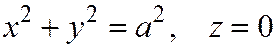 есть уравнение круглого цилиндра радиуса а, осью которого является Оz, a z=0 есть уравнение плоскости хОу. Эти две поверхности пересекаются по окружности С.