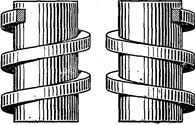 Эти уравнения и являются параметрическими уравнениями винтовой линии. Они выражают закон движения точки по этой винтовой линии. Параметр и принимает все, действительные значения. Если заменить на противоположное направление вращения радиуса (или перемещение плоскости окружности), то получим винтовую линию противоположной нарезки.
