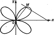 11. Отрезок постоянной длины 2а скользит своими концами по сторонам прямого угла. Найти линию, описываемую при этом движении отрезка основанием перпендикуляра, опущенного из вершины прямого угла на отрезок (в полярных и декартовых координатах) (рис. 74).