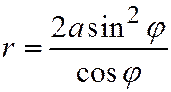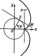 9. На окружности радиуса а взята точка О и через точку K, диаметрально противоположную точке С, к окружности проведена касательная. Вокруг точки О вращается луч, пересекающий окружность и касательную соответственно в точках A и B. На этом луче от точки О откладываем отрезок ОМ, равный отрезку AB луча, заключенному между окружностью и касательной. Линия, описываемая точкой М при вращении луча, называется циссоидой Диоклеса.
