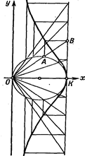 Рис.75 Рис.76 диаметру ОК.. Найти геометрическое место точек пересечения этих прямых (верзьера Марии Аньези), принимая за начало прямоугольной системы координат точку О, а за ось абсцисс диаметр ОК (рис. 75).