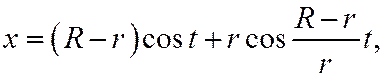 14. Круг радиуса r катится по кругу радиуса R, оставаясь внутри него Написать параметрические уравнения линии, описываемой точкой катящегося круга (гипоциклоида). Выбор системы координат и обозначений такой же как и в предыдущей задаче (рис. 77).
