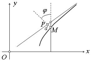 от точки М(х, у), лежащей на дуге гиперболы, определяемой уравнением (2), до прямой (3); переписывая уравнение (3) в виде
