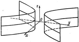 Эллиптический, гиперболический и параболический цилиндры суть поверхности, образованные прямыми линиями, проходящими через точки эллипса, гиперболы и параболы перпендикулярно плоскости каждой из этих линий. Эти линии - эллипс, гипербола и парабола называются направляющими, а прямые - лежащие на поверхности цилиндра, - его образующими. Для цилиндров, заданных уравнениями (5), (6), (7), направляющими являются соответственно: