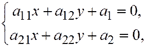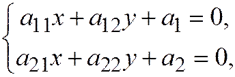 , пересекаются в её центре (поскольку Вы знаете, что это система для определения координат центра), но в таком случае уравнение любой прямой