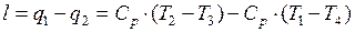 Работа, затрачиваемая на осуществление цикла, равна разности удельных количеств теплоты
