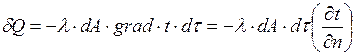 Минус в правой части показывает, что в направлении теплового потока температура убывает и grad t является величиной отрицательной. Множитель пропорциональности