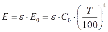 Для излучения абсолютно черного тела она может быть вычислена по закону Стефана - Больцмана, Вт/м2 :