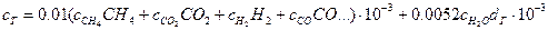 Теплоемкость газообразного топлива (на 1 м3 сухого газа), МДж/(м'-К), определяется по формуле: