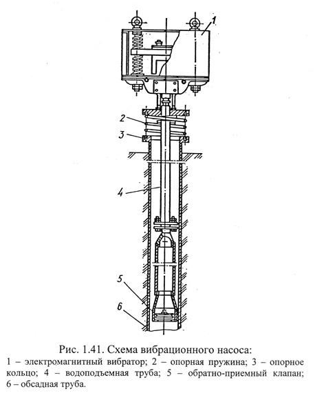 Вибрационные насосы относятся к возвратно-поступательным насосам, принцип действия которых основан на использовании инерционных сил. Основным рабочим органом вибрационного насоса (рис. 1.41) является электромагнитный вибратор.