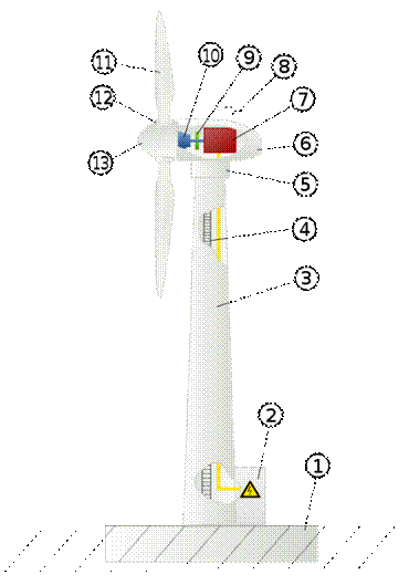 Лопасти могут быть непосредственно закреплены на валу генератора, или же вращающий момент может передаваться от его обода через вторичный вал к генератору, или другой рабочей машине.
