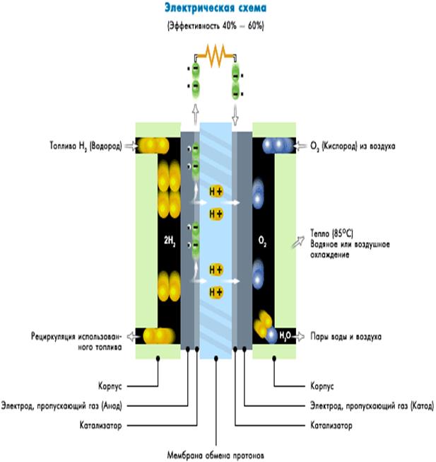 Водородный топливный элемент представляет собой устройство, преобразующее химическую энергию реакции соединения водорода с кислородом в электричество.