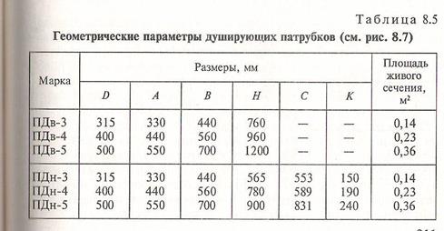 Душирующие патрубки (рис. 8.7) с верхним (ПДв) и нижним (ПДн) подводом воздуха без увлажнения предназначены для создания требуемыз параметров воздуха на рабочих местах, подверженных тепловому облучению.