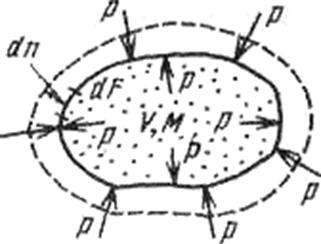Рассмотрим газ массой М и объемом V, заключенный в эластичную оболочку с поверхностью F.