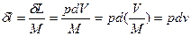 При бесконечно малом изменении объема dv площадь заштрихованной вертикальной полоски равна