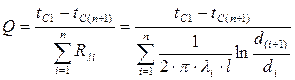 Для определения теплового потока через многослойную цилиндрическую стенку следует, как и для многослойной плоской стенки, просуммировать термические сопротивления отдельных слоев: