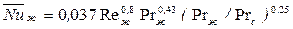 В формуле справедливой для наиболее распространенного турбулентного течения при RеЖ =104-5.106 и Рr = 0,6-2500, определяющим размером является внутренний диаметр трубы d. Если это не круглая труба, а канал произвольного сечения, то формула тоже применима, только определяющим размером будет эквивалентный диаметр канала dЭКВ = 4F/П, где F — площадь поперечного сечения; П — внутренний периметр этого сечения.